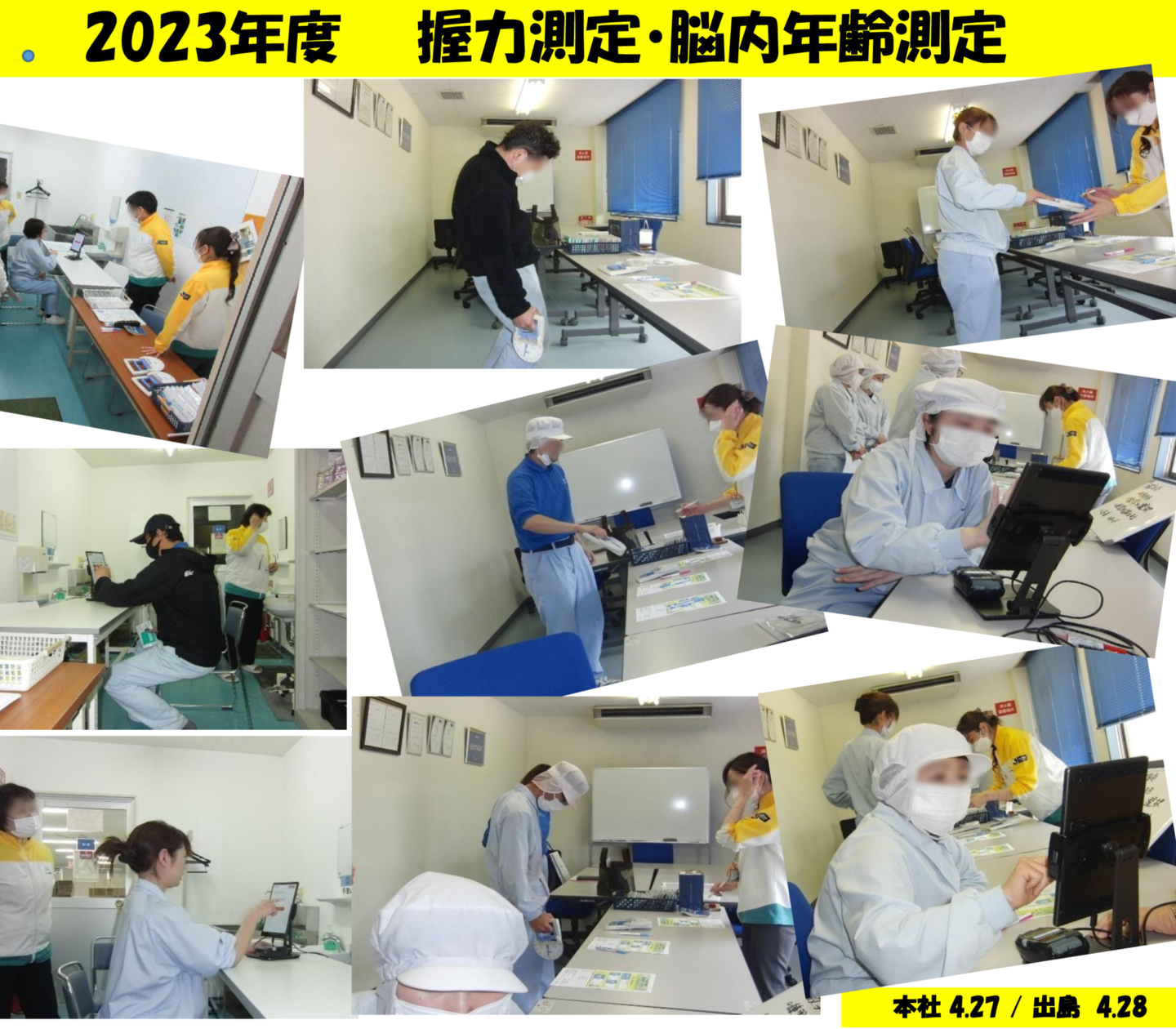本社・出島の両工場にて「握力測定会(脳年齢測定会)」を実施しました。